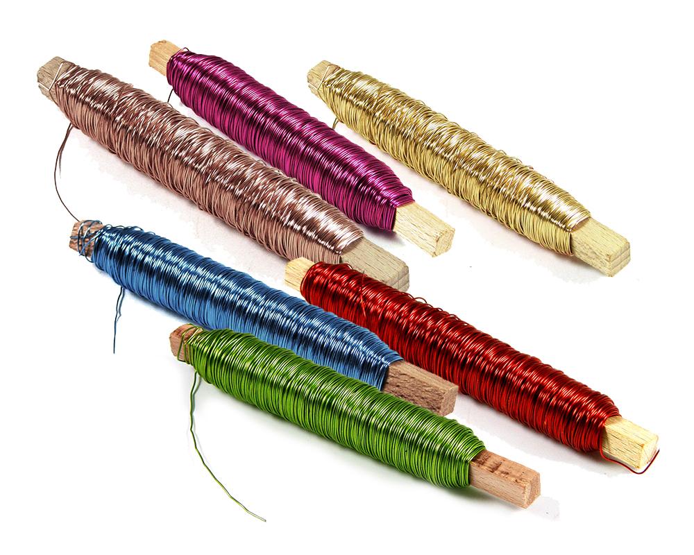 Dekorační lakovaný drát na dřívku -hladký-Ø 0,5 mm-100 gramů (cca 50 metrů)