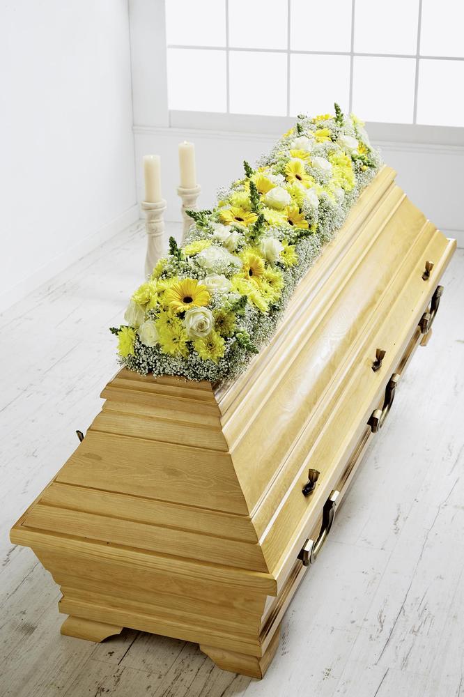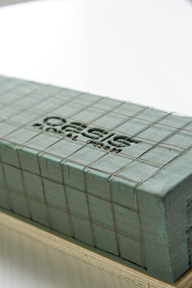 Pohřební držák s drěvěnou podložkou a drátěnou mřížkou,zabraňující rozlomení hmoty při větších aranžmá. V podložce jsou díry pro připevnění na plochu.