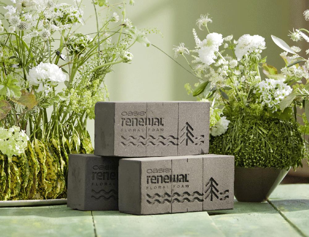 Seznamte se s inovativní aranžovací hmotou OASIS ® Renewal™ Floral Foam vyrobenou na rostlinné bázi. Tato hmota neobsahuje žádná barviva a je vyrobena z rostlinných a obnovitelných surovin.