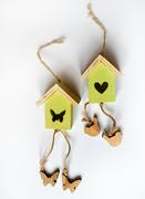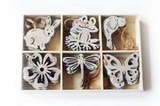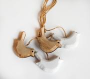 Dřevěný ptáček šedý a bílý